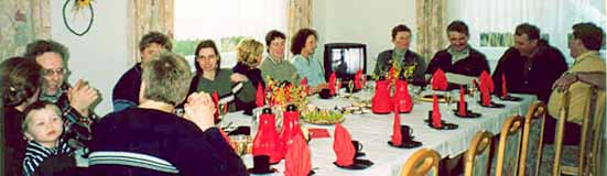 Bernd Wille hatte sich auch angemeldet. Am Abend vorher hatten wir uns schon auf der Vorstandssitzung in Niemegk getroffen. Es war da sehr spät geworden und auch für Bernd war die Nacht kurz. Ludwig Zachmann, der zweite Vorsitzende der DFZ-Region Ost, fand sich auch zur geselligen Runde ein. Zum erstenmal kamen Christine Arnhold und ihr Freund, Kathrin Hlawa, Gerhard Anton und Dirk Saggau. Themen waren Hautschuppen, Stammbuchpapiere, Zuchtschauteilnahme, Inzuchtfaktorberechnung auf der Website von Aise Bouma www.pikestjelp.nl Auf der Seite Inteeltberekening erscheint ein Eingabeformular. Mit Hilfe des Stammbuchpapieres der Stute kann es folgendermaßen ausgefüllt werden: Stammbuchhengst: z.B. Lammert 260 => es wird die Stammbuchnummer 260 eingegeben. Fohlenbuchhengst: die 9-stellige Stammbuchnummer eintragen Stammbuchstute: z.B. 199334560 die ersten 4 Ziffern stehen für das Geburtsjahr, die nachfolgenden 4 Ziffern in diesem Fall 3456 bitte eintragen. Bei Stuten, die vor 1989 geboren wurden, nur die vierstellige Zahl eingeben. Fohlenbuchstute : die 9-stellige Stammbuchnummer eintragen. Bei Fohlenbuchstuten, die vor 1989 geboren wurden, stehen 2 Kennzahlen z.B. 170/173vb => 170 x 10000 + 173 => 1700173 eintragen. Beibuchstute : z.B. hat die Kennzahl 125H => -125 eingeben. Wenn alle Felder ausgefüllt sind, den Button Berekenen anklicken und nach kurzer Zeit erscheint die Liste der Stammbuchhengste mit dem Inzuchtfaktor für eine Anpaarung. Zum Friesenritt in Fehrbellin wurden auch die ersten Verabredungen getroffen. Nun ja, die Fotos von diesem Zusammentreffen sprechen für sich. Das Thema “Videofilm von der Hengstkörung” wäre gar nicht nötig gewesen. Jeder hat sich prächtig unterhalten und die letzten gingen noch abends zusammen zum Essen.